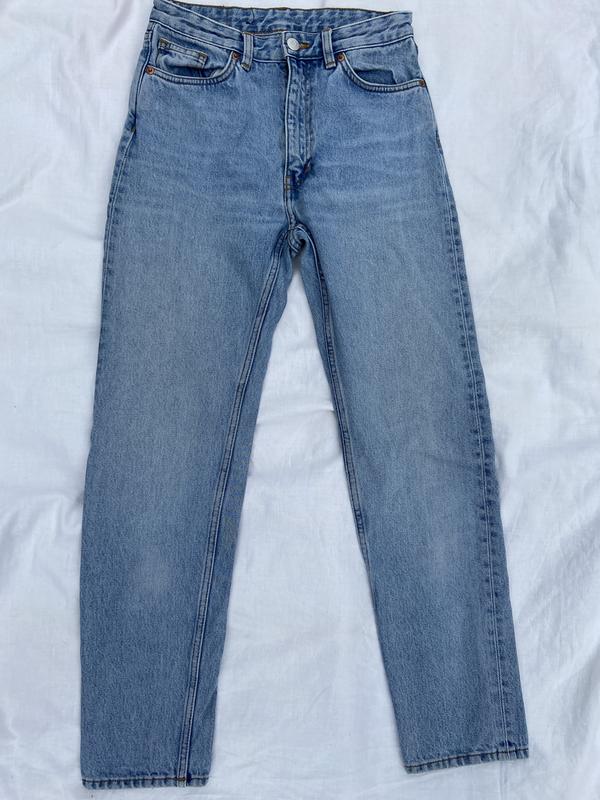 Джинси Состояние красивое. Э небольшая потертость малозаметная (смотрите на фото) Подойдет на размер XS - S Замеры: Полуобхват талии – 33 см Полуобхват бедер - 43 см Посадка спереди - 26 см Посадка из зади - 34 см Длина - 95 см