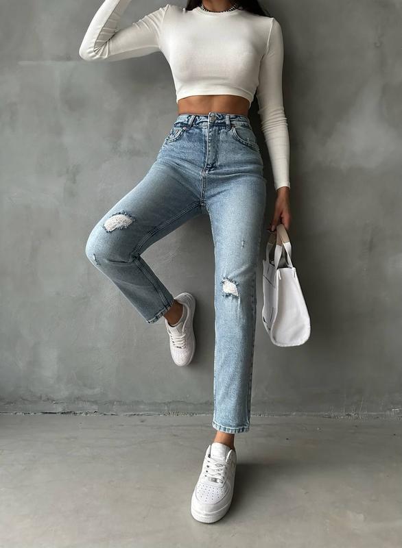 😘Новинка 😘 Стильные MOM Jean’s свет голубого цвета ✔️ 🔎Арт. 2195 🔺Высокое фабричное качество, Турция 🇹🇷 🔺Размеры 34, 36, 38, 40 Трещи тянутся ❗️ ▫️34р. ПОТ-32 см, ПОБ-42 см ▫️36р. ПОТ-33 см, ПОБ-43 см ▫️38р. ПОТ-36 см, ПОБ-45 см ▫️40р. ПОТ-38 см, ПОБ-49 см Длина 98 см
