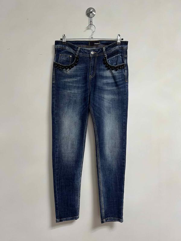 Джинсы темные женские с бусинками
