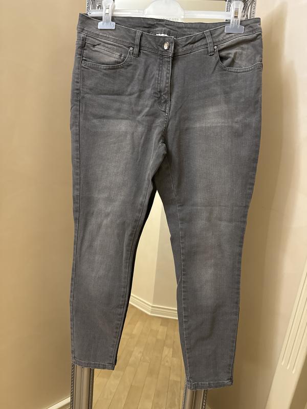 Жіночі джинси світло сірого кольору, завужені донизу, добре тягнуться.