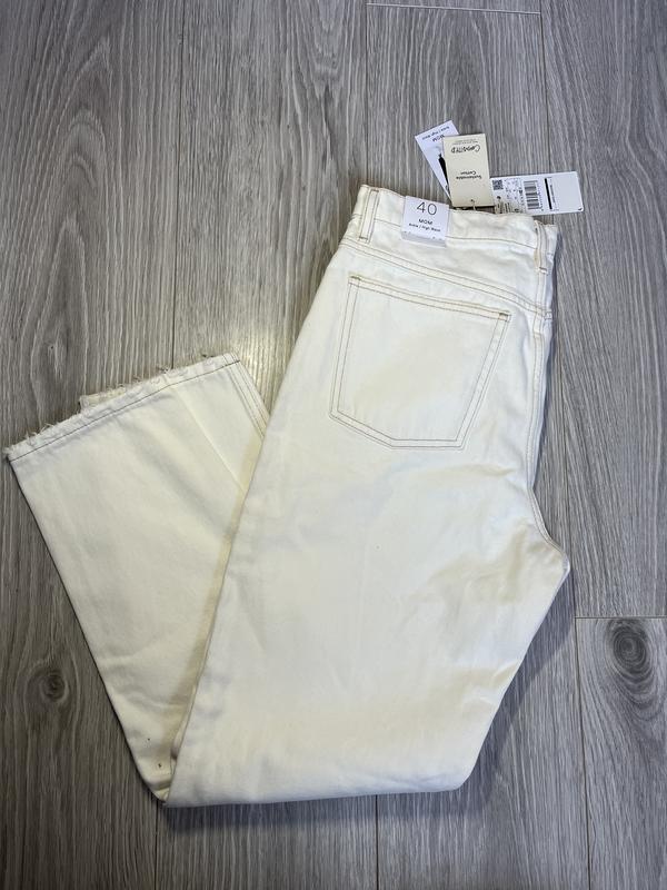 Джинси мом дуже гарної якості 100% котон Підійдуть для дівчат розмір М або невелика L Є незначні недоліки , на задній частині , залишки від клейкої стрічки , але при носінні не помітні Орієнтуйтеся по замірам Напів. обх. тілії - 42 стегон - 55 Глибина посадки - 30 Довжина виробу - 100
