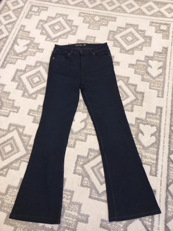 Тендові джинси ,темно-синього кольору,майже чорні .Кльош.Розмір 40-42,з еластаном,тягнуться.НОТ 40до 45 НОС 50 до 60....Дожина 105.