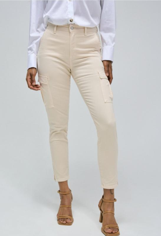 Новые зауженные джинсы с высокой талией, с накладными карманами на бедрах, снизу на молнии, ПИТ 34-37, ПИБ 46-53, посадка 28/35, длина изделия 101, ширина штанины сверху 37-30, снизу 10.