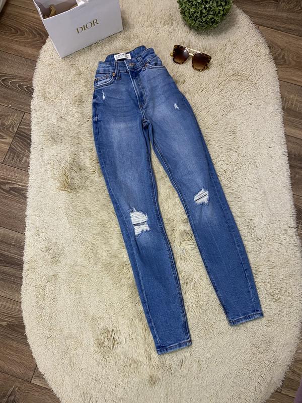 Джинси скіні розмір XXS, у складі бавовна та еластан (тягнуться), довжина 91см., висота посадки 23см., півобхват таліі 29см., півобхват бедра 38см. Стан ідеальний.