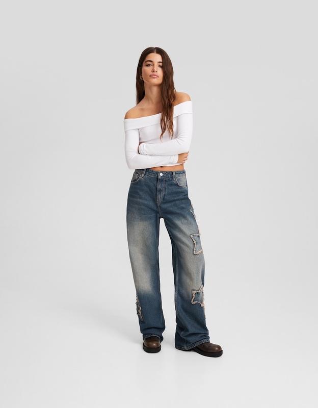 джинсы багги Прямой крой, широкие штанины, аппликация - звезды. 5 карманов. Застежка молния + пуговица- кнопка. Размер в наличии: ЕU 36/ US04/ UK8 Замеры изделия: ПОТ 39см, ПОБ 50 см, по наружному шву 107 см, внутренний шов 78 см, ширина штанины в самом широком месте 31 см, ширина штанины внизу 26 см, посадка 29 см. Состав: 100% хлопок Машинная стирка Наложенным только НП по предоплате 120 грн.