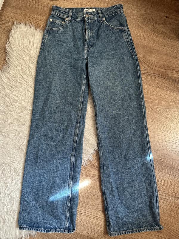 З безпечною оплатою і через кнопку «купити» не працюю🙅🏻♀️ пересилка по передоплаті 150 грн. Джинси Pull&Bear широкі з високою посадкою. Щільний денім, не тягнуться. В ідеальному стані, носилися лише декілька разів. Розмір 36. Пояс 36 см, стегна 49 см, довжина 108 см, крокова 80 см. Без торгу.