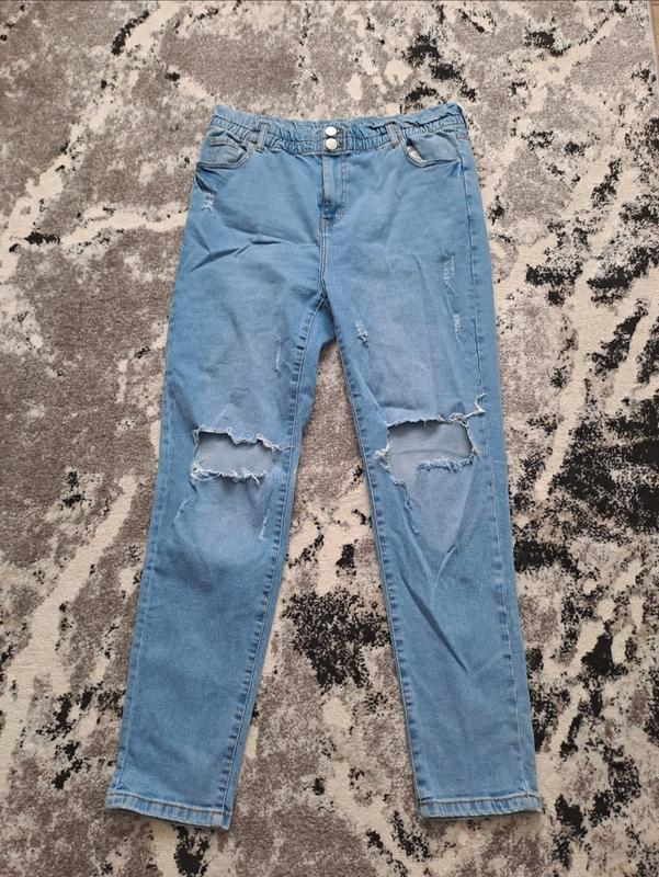 джинсы можна очень красиво тянется Талия на резинке. высокая посадка. состояние идеальное но есть один дефект у колена на внутреннем шве есть пятнышка. при вязке не слишком заметно