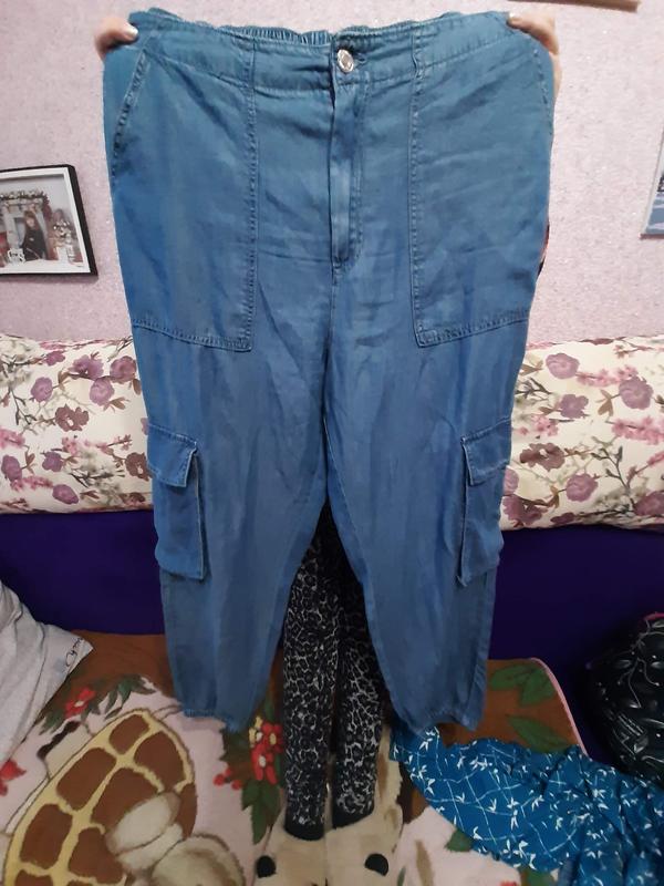 легкие коттоновые летние джоггеры, низ на резинке,талия 43/54,резинка на талии, поб 63, посадка 34,длина 101,шаг 71,не тянется,станидеальный