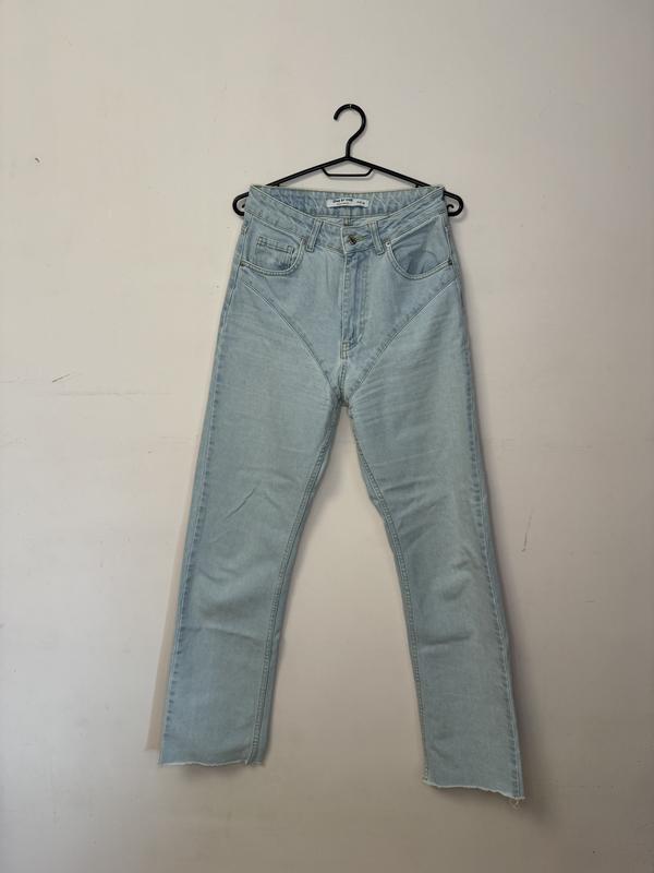 Голубые джинсы высокой посадки, очень популярная модель