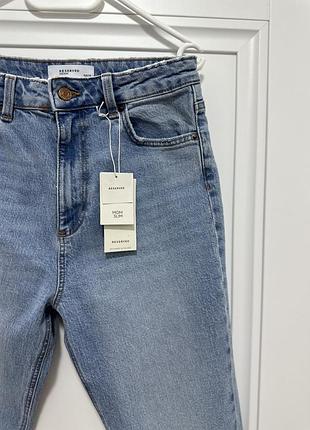 Дуже класні джинси mom fit від Reserved, в розмірі 38, нові, прогадала з розміром, повномірні, афігєнна модель з високою посадкою та прямими ногавицями, гарно сідають по фігурі, плотний мʼякий джинс, трішки тягнеться, не тверді, гарний світлий відтінок, базова модель на літо
