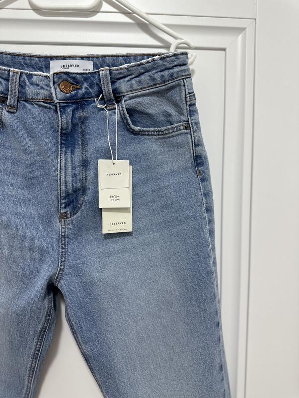 Очень классные джинсы mom fit от Reserved, в размере 38, новые, прогадала с размером, полномерные, афигиенная модель с высокой посадкой и прямыми ногавичками, красиво садятся по фигуре, плотный мягкий джинс, немножко тянется, не твердые, красивый светлый оттенок, базовая модель на лето