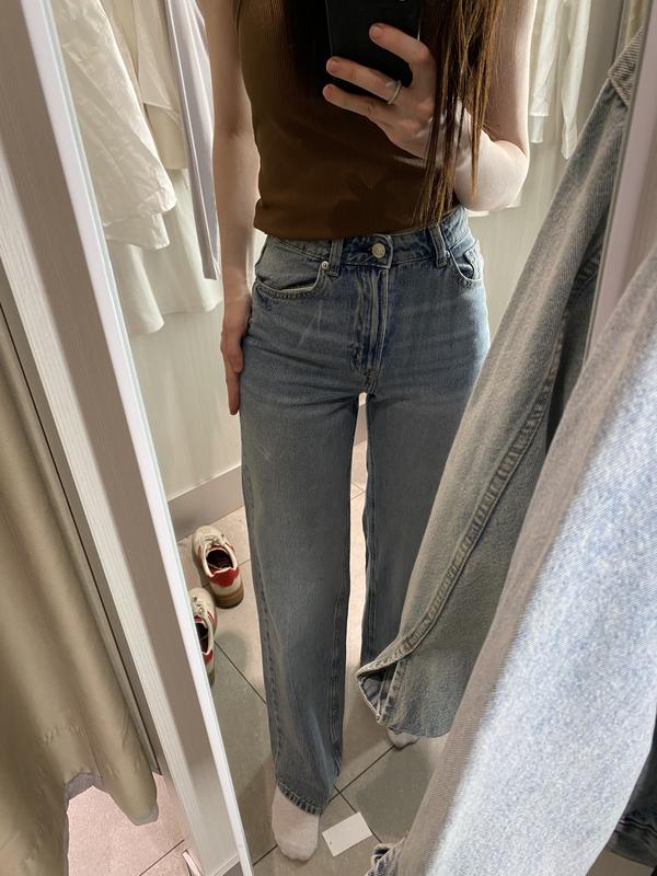 Цена 2100 грн 5-6 дней📦 📌В более светлом цвете джинсов есть все размеры в наличии 📌 На девушке размер 32 - XXS Эти джинсы, что на фото остались только 32, 36 размер! Очень удобные, средняя посадка. Цвет и качество безупречны! В магазинах уже меньше их! Джинсы с пятью карманами из выстиранного хлопкового денима. Модель с завышенной талией, широкими прямыми штанинами и застежкой-молнией на пуговицу. Номер товара: ******** Модель: приталений Стиль: Прямые ноги, Широкие Описание: Светлый деним синего цвета, однотонный