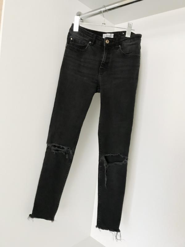 Женские темно-серые укорочённые джинсы джеггинсы скини рванки на коленях mango