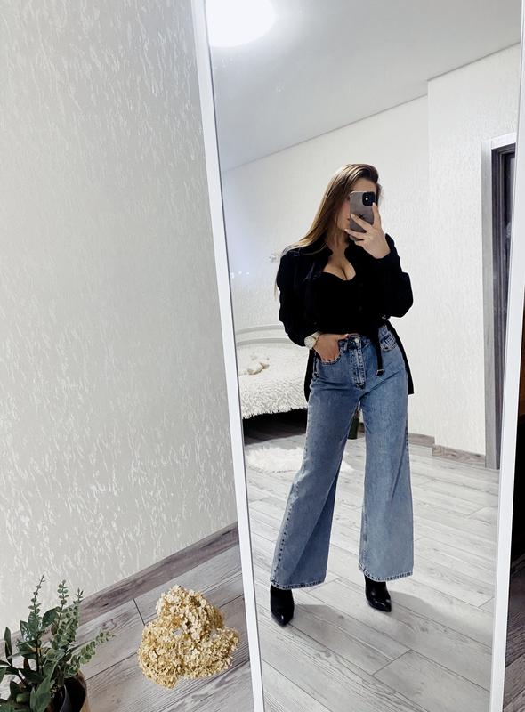 Джинсы прямого кроя, высокая посадка.