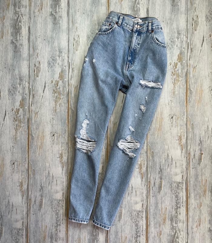 🔸Шикарні MOM джинси від pull&bear 😍 🔸Розмір EUR 40, USA 8 (на об’єм бедер 100-108 см) 🔸Стан ідеальний . Заміри: по пояса - 38 см по бедер - 54 см посадка - 30 см довжина по зовнішньому шву - 99 см довжина по внутрішньому шву - 68 см ширина штанини внизу - 16 см