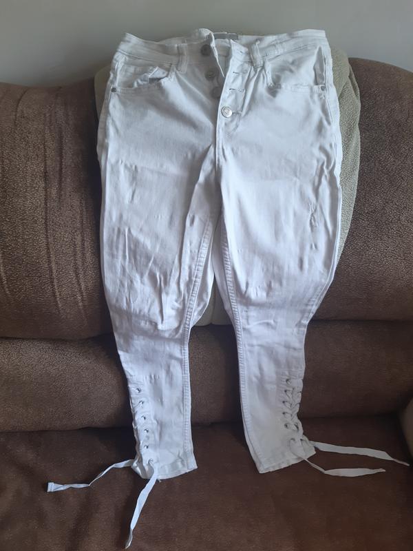Джинсовые штаны белого цвета, на шнуровке,можно редактировать низ на ноге,размер 34,наш 26й