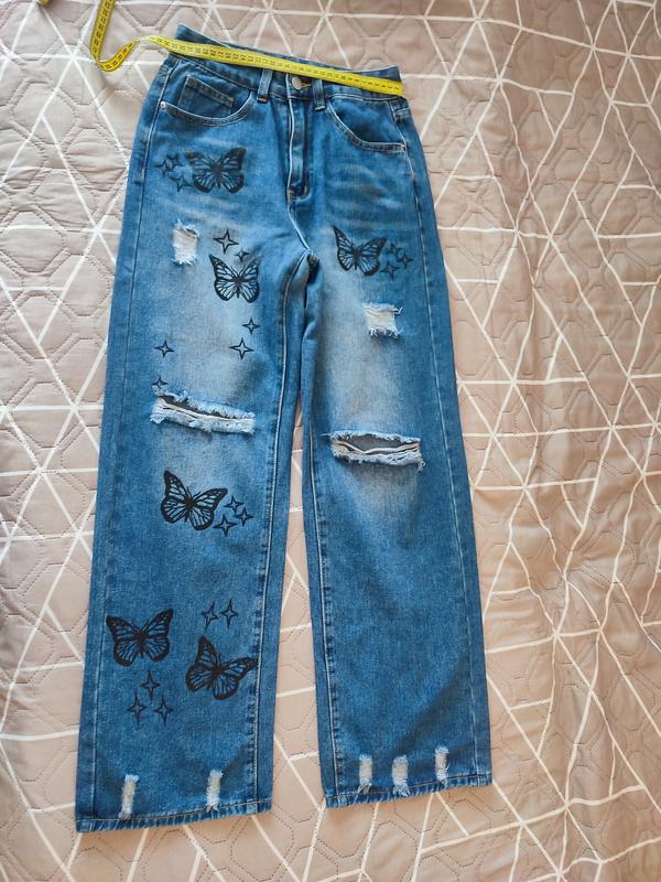 Широкі джинси з принтом, дуже круто сидять по фігурі, купляла в Хумані без примірки, виявилися малі мені
