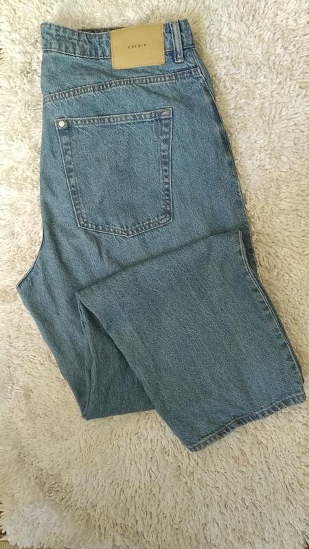 Джинсы- бананы 90' s baggi jeans.Стан - идеальный. Без нюансов и докораний.Котон очень приятный к телу. Цвет-классически голубой. Размер на фото, Пот-43-46. Поб-60-62. Сиденье впереди-34. по заду-46. Длина 105(от пояса) и шаговой-77.Стан-новые!! Не подходит размер... Очень хорошая посадка и форма.