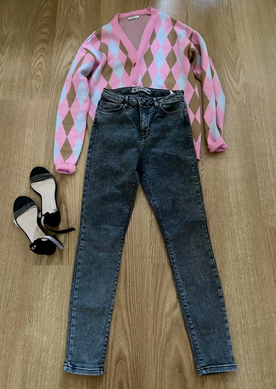 Джинсы скинни серого цвета Талия 33 Бедра 42 Длина 96 Утягивающиеся