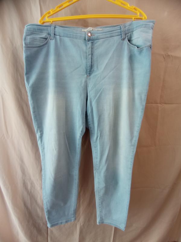 джинсы светлого цвета.длина 104см 48 размер полу объем талии 56см