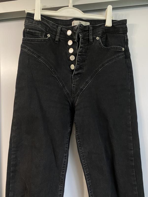 Джинсы с пуговицами и эффектом трусиков, на конце имеют разрезы