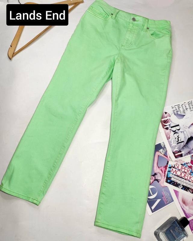 Джинсы женские салатового цвета со средней посадкой укороченные от бренда lands end 8/12
