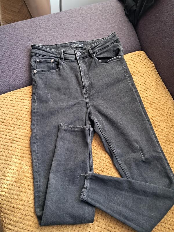 черные джинсы с высокой посадкой, слегка тянущиеся с необработанным низом