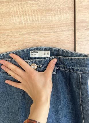 Джинсові штани прямі і розклешонні вниз, вільні в ногах, але по розміру в талії та попі