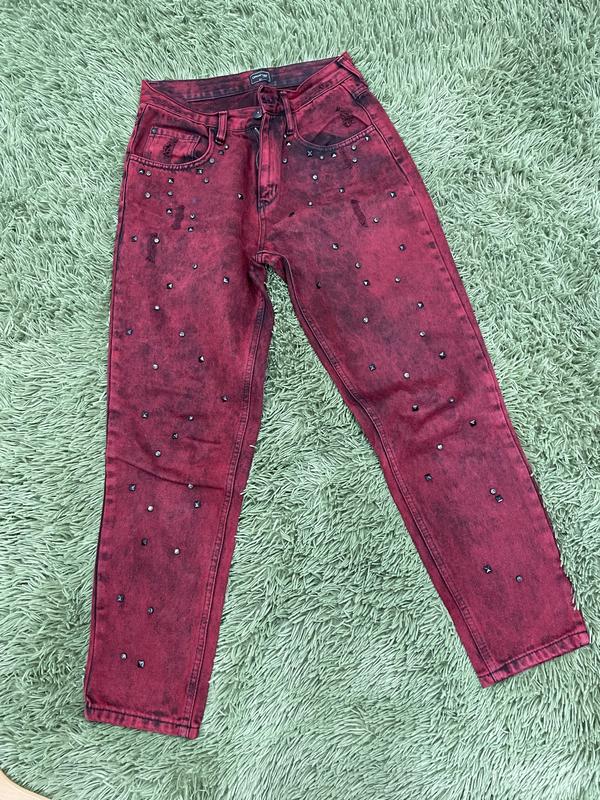 Очень крутые джинсы мом в идеальном состоянии. Размер указан 27. На С и на М. В стразах и металлических штучках