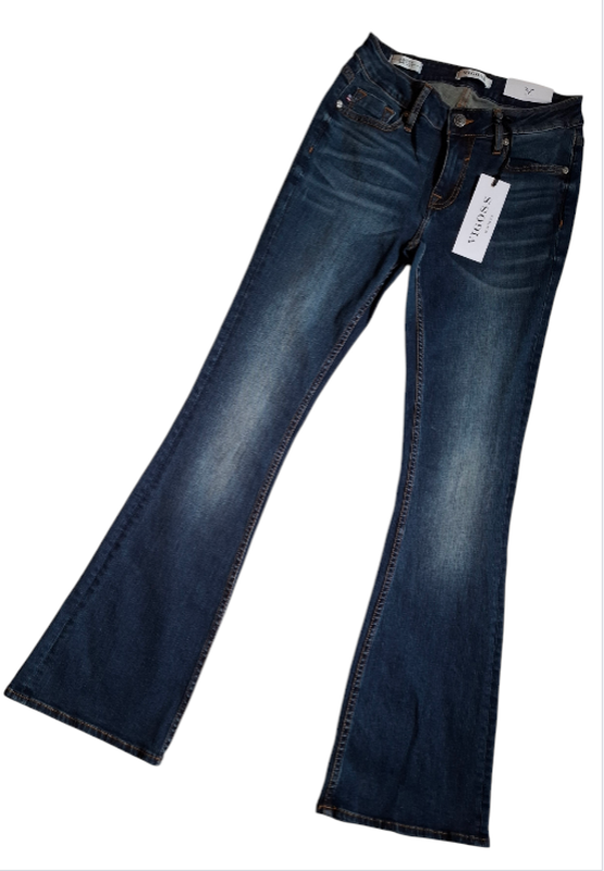Джинсы клеш Vigoss USA женские супер стрейчевые размер 26 цвет индиго 2, высокая посадка. ЗАМЕРЫ ПОТ 34,5/43см, ПОБ 42см, длина по боковому шву 104см, шаг 80см, ширина штанины верх/низ 23,5/23см, посадка 21,5/33см 473