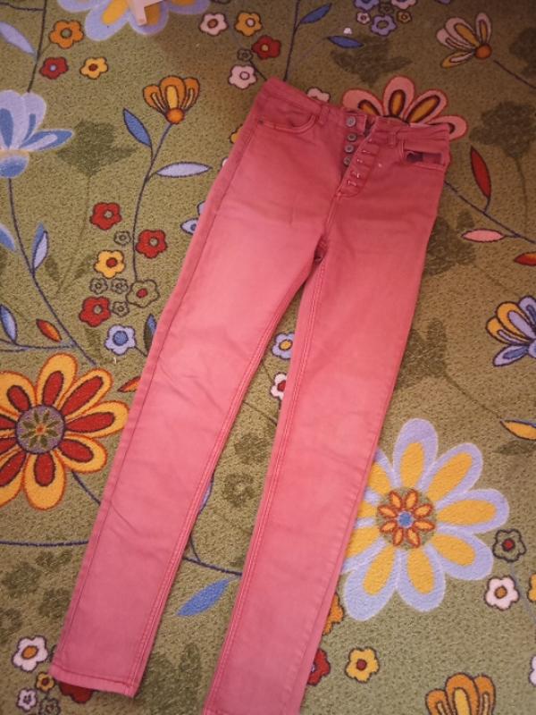 Джинсы женские на высокой посадке Цвет: красный-бордовый Размер: 156-160 см Бутылочный плям нет