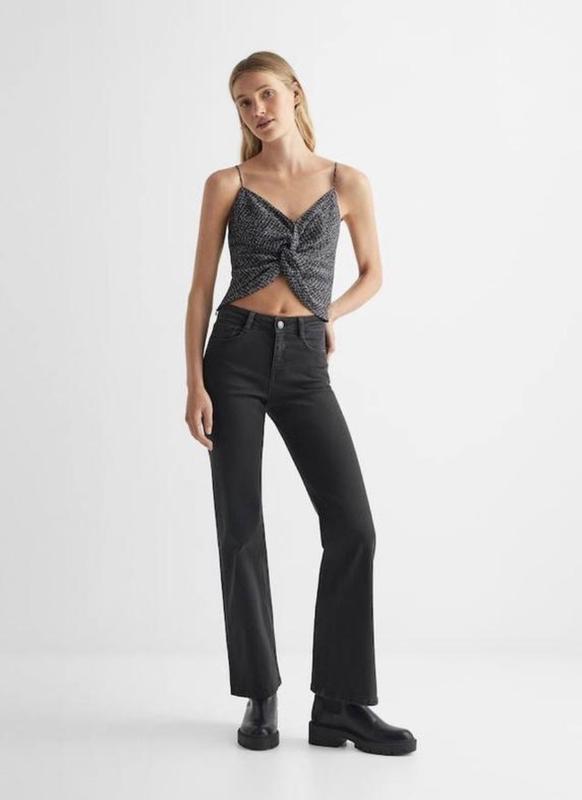 Джинсы клеш с разрезами mango xs Полуобхват талии 31 тянется до 35 Полуобхват бедер 37 тянется до 43 Посадка 25/28