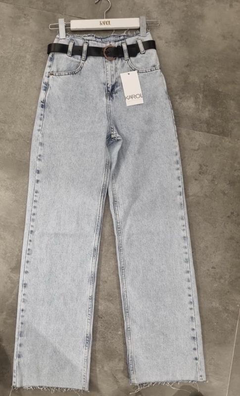 Джинсы свет голубые с поясом размер s m l высокая посадка.**********