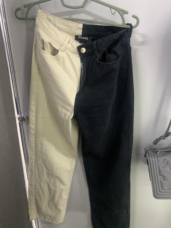 Двухцветные джинсы MONKI, размер 34 🔸 Бренд: MONKI 🔸 Состояние: отменный, без дефектов 🔸 Цвет: Черно-бежевый (контрастный дизайн) 🔸 Материал: Хлопок с добавлением эластана (комфортные и эластичные) 🔸 Размер: 34 (подойдут на XS-S, ориентируйтесь на собственные замеры) 🔸 Посадка: Высокая талия 🔸 Особенности: Стильный асимметричный дизайн, трендовый крой ✨ Идеальны для создания модных луков! 📩 Пиши в дырект для заказа или уточнения деталей.