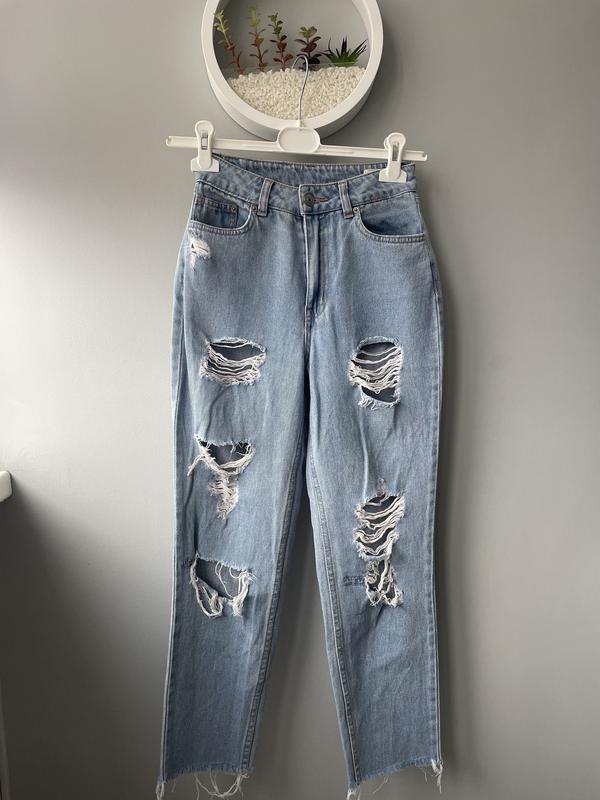 Джинсы с дирками, низ рваный Размер XXS-XS Талія 60см Стегна 88см Длина по боку 90см Длина по шагу 63см дополнительные фото присылаю в личные