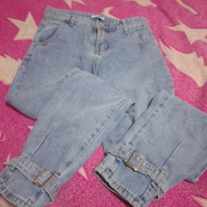 Джинсы с высокой посадкой и интересным дизайном на весну. Полуобъем талии 35 см, бедер 44 см, длина брюки них 95 см, внутрення 70 см.Торг