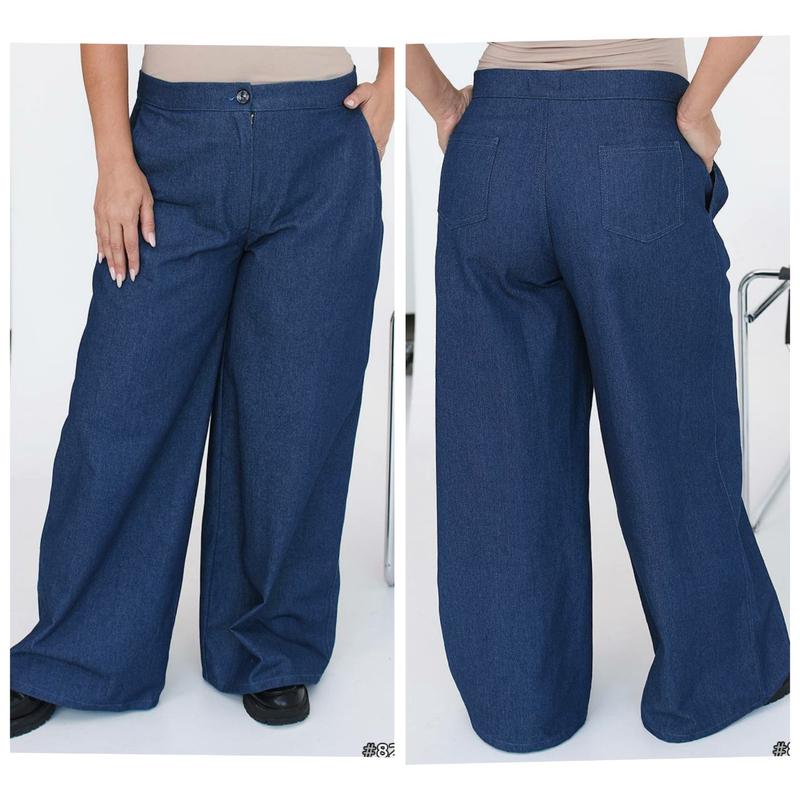 Спелые джинсы палаццо Мод. 347 макс Ткань: Джинс Турецкого производителя, плотный. Размеры: 50-52, 54-56, 58-60. Цвета: Темно-синий, Синий. Хорошее качество, отличный пошив!! 50-52 ОБ 120 см, вот-90 см, длина 105 см 54-56 ОБ 130 см, талия-100 см, длина 106 см. 58-60 ОБ 140 см, талия-110 см, длина 107 см.ск3.Не надавливайте на кнопку Купит, не узнав при наличии товара.Подписывайтесь.ждать...)
