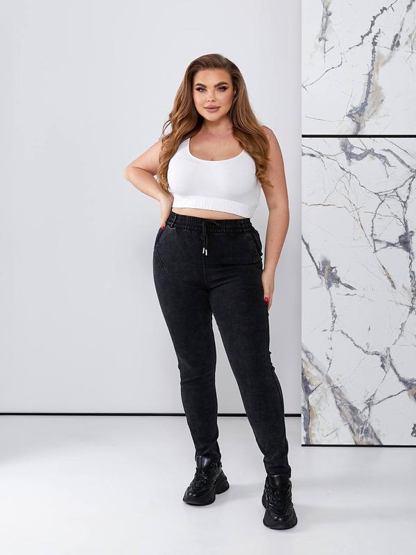 Джинси Размеры: 50-52,52-54,54-56,56-58,58-60,60-62 Цвета: черный Стрейчевые джинсы имеют рабочие карманы спереди и сзади5)+ На поясе резинка и регулирующий шнурок. Отлично тянутся. Цена: 730 грн