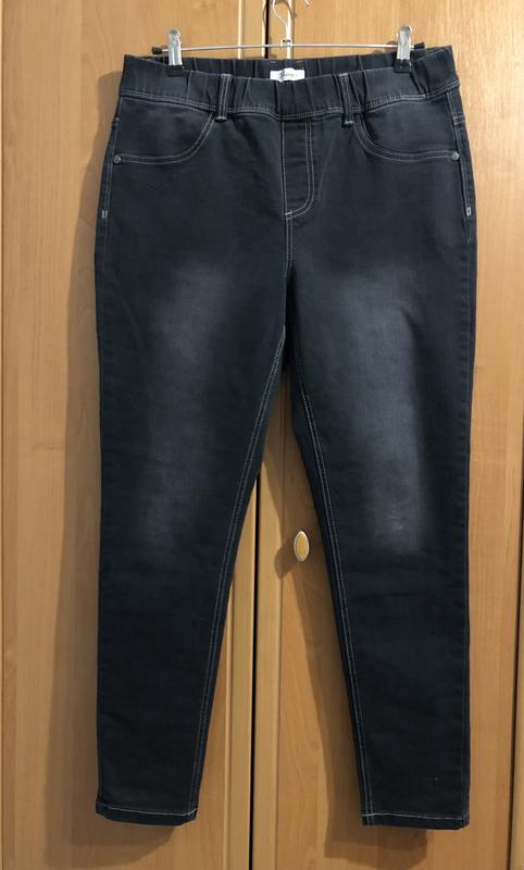 Стрейчеві з ефектом потертостей, широка резинка по талії. ОТ 43-50, ОБ 54-60, довжина 100, посадка 28/42.