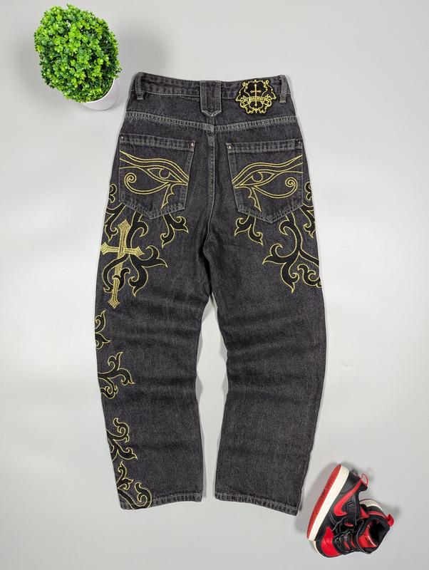 Y2K Женские Винтажные Темно Серые Джинсы С Желтой Вышивкой | Размер XXS/XS ✨ Цвет: темно-серый с желтой вышивкой ✨ Состояние: Отличительный ✨ Материал: Плотный деним – долговечный и стильный ✨ Стиль: Y2K, Vintage, Streetwear 🔹 Особенности: ✅ Уникальная вышивка – стильные орнаменты с египетскими мотивами ⚡ ✅ Плотный котоновый деним – износостойкое качество 🏆 ✅ Сзауженный крой – подходит для стильных streetwear луков 🏙️ ✅ Глубокие карманы – удобны для повседневного использования 📱🔑 ✅ Редкая винтажная модель – для тех, кто ищет уникальные вещи 🕶️ 📏 Замеры: 🔸 Полупояс (половина талии): 31 см 🔸 Подъем спереди: 29 см 🔸 Половина бедер: 42 см 🔸 Длина по внутреннему шву: 62 см 🔸 Длина по внешнему шву: 90 см 🔸 Полувыход из штанки: 17 см 💣 Идеальный выбор для создания трендовых Y2K и streetwear образов! 📩 Пишите в сообщение – быстро ответьте на все вопросы!