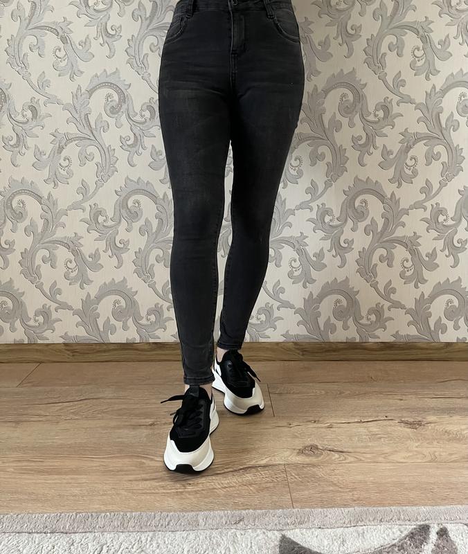 Джинсы скинни, тоненький джинс стрейч, тянется, цвет графит с элементом потертости, высокая посадка Размер 27, состояние хорошее