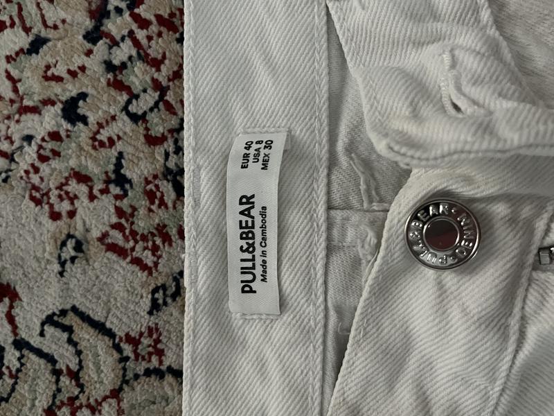 Белые джинсы, в далеком состоянии идеальны, но есть маленький нюанс у шва внизу.Носила на S, подойдут на М и не маленькой S