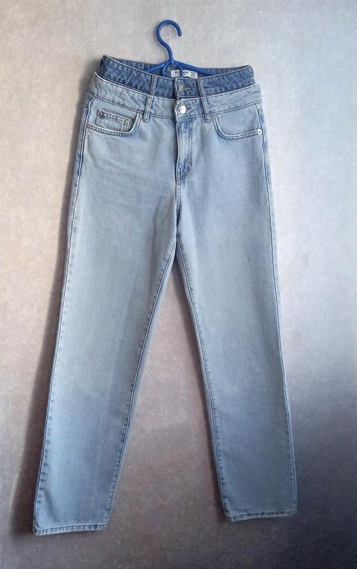 Модные джинсы с двойным поясом, на высокую девушку. Высокая талия, натуральный джинс. Размер по бирке указан 26. Замеры: ПОП 35 см., ПОБ 51 см., длина 112 см
