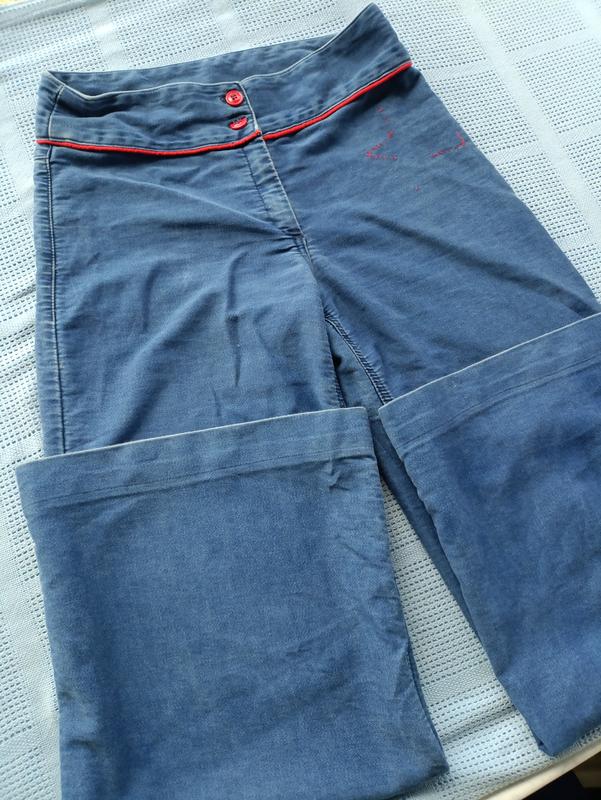 Джинсы расширенные с отделкой красным шнуром