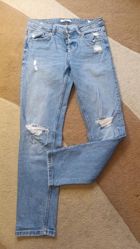 Джинсы женские рваные. Состояние новых. Размер 38. Талия 76 см, бедра 92 см. Довжина 93 см, крок 72 см.