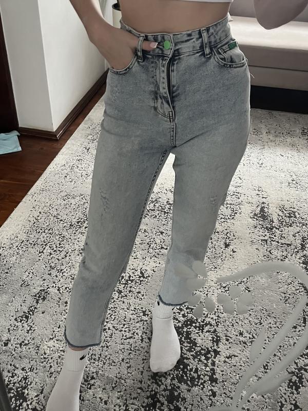 Имеют высокую посадку и свободный крой – идеально подходят для ежедневной носки. Модные потертости, классический голубой оттенок, удобные глубокие карманы.