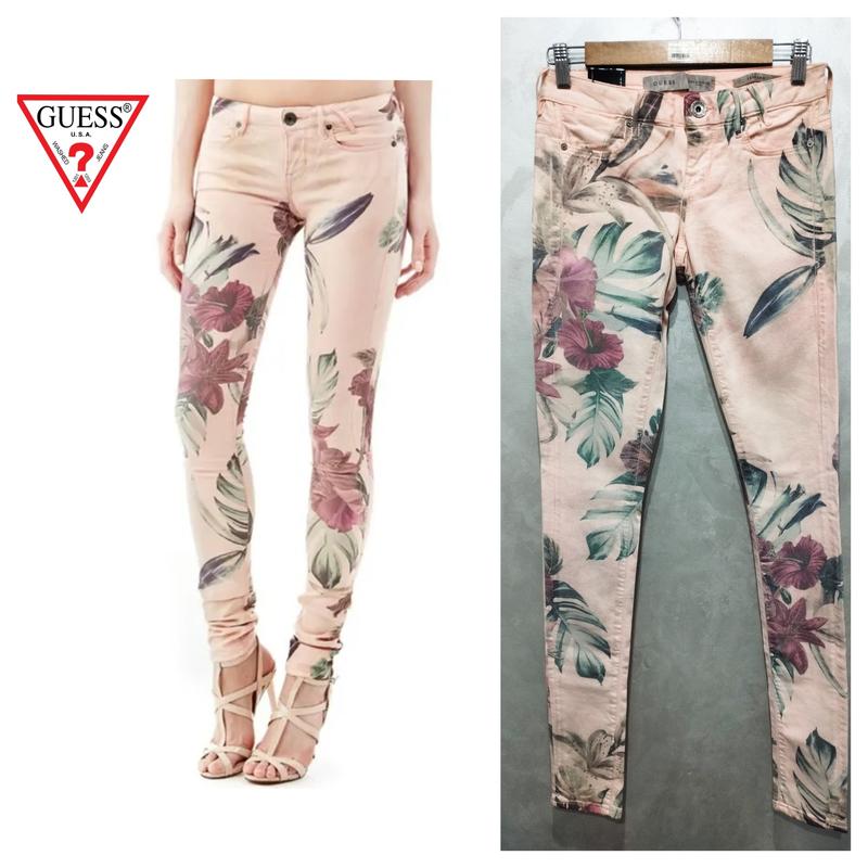Guess, стильные новые джинсы в цветочный принт от люксового бренда