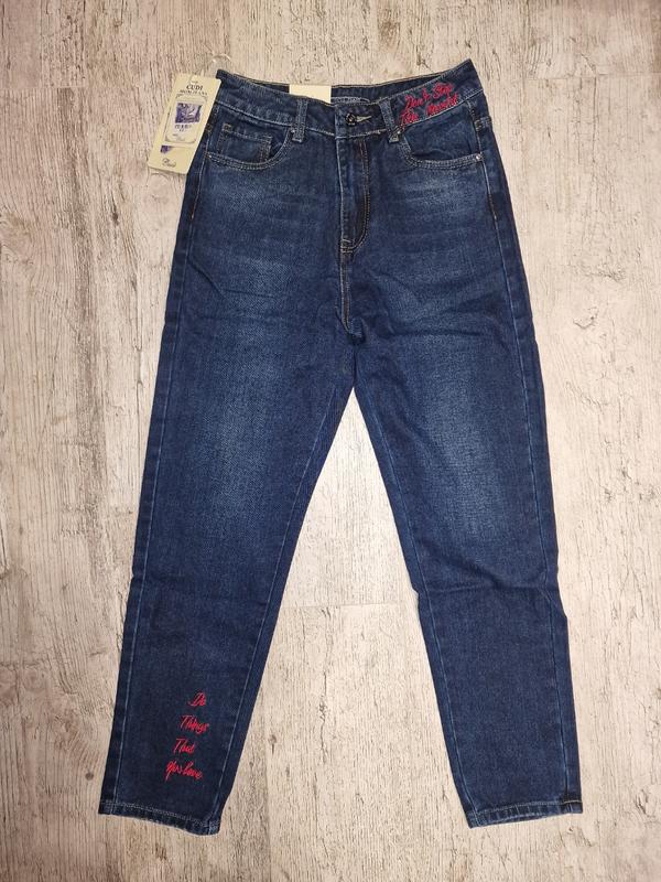 джинсы МОМІ темно синей с красными надписями