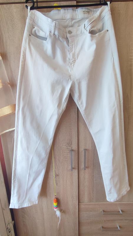 Продам джинсы белые в идеальном состоянии, ни разу не одевались, без пятен и без затертостей. Идеально подойдут на размер 52/54 Внешний шов 105 см Внутренний шов 75 см Пояс 45 см ширина штанини внизу 18 см Состав: 83% коттон, 15% полиэстер, 2% эластан