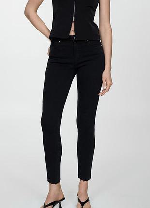 Мʼякий джинс підкреслить вашу фігуру , колір чорно-сірий . Магазин mango розмір 36 за біркою і в реальному.Хлопкова тканини в стилі денім. еластична тканина. Обтягуючий крій.Укорочений дизайн.Середня посадка.Шлевки для ремня. Довжина 90 см.